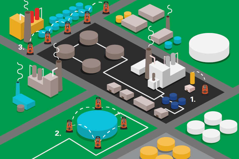 想象一下,一个工厂的一个储罐发生气体泄漏,直到隔壁工厂关闭也还未能修复。区域气体监测仪可以战略性地放置,以将正常工作区域与正在执行修复的区域隔开。持续监测和即时通知允许安全人员在发生与气体相关的紧急情况时做出适当反应。