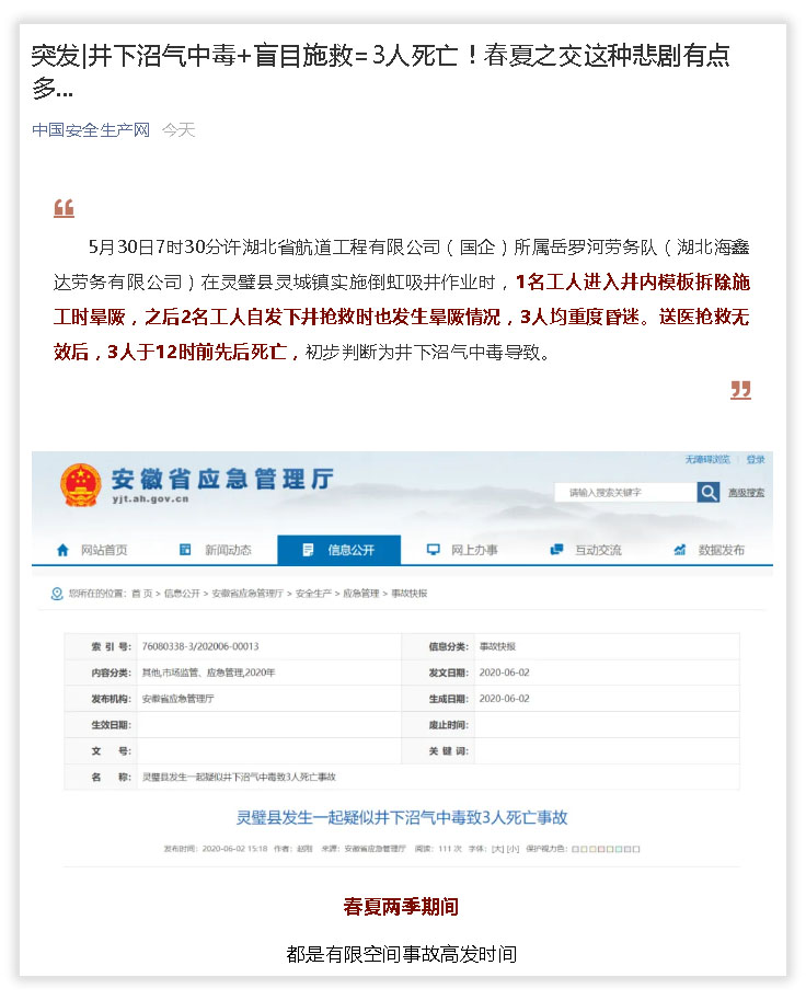 水处理行业存在很多密闭空间,密闭空间存在的危险,为此工人必须做好应对准备。尽管出台有严格的法规,相关技术取得了进步,但需要许可才能进入的密闭空间依然会导致事故和伤亡问题。我们还是经常会看到例如以下这类信息。
