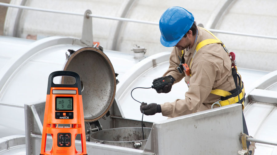 用户可以通过泵吸式气体检测仪(如Ventis Pro5, Ventis MX4, MX6 iBrid和Radius BZ1区域监测仪),在进入密闭空间前采集样本,并在整个作业过程中持续监控空间。尽管通常会考虑用手持便携式仪器对密闭空间的气体进行检测,但Radius BZ1区域监测仪可减少密闭空间作业的成本、提高效率,加强安全性,特别适用于持久、连续的检测需求。