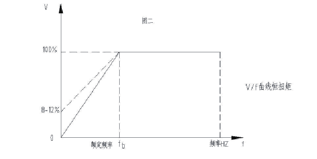 如图二板式给料机作为一种半连续给料的机械,其工作性质为低转速、大扭矩,带料启动等特点,其调速形式是典型的恒扭矩调速。这就要求变频装置保证v1随fl成比例的变化。则V1/f1=常数,这样可保证在频率变化过程中电动机具有同样的过载能力,当电压达到99%时输出扭矩为大,且为常数。