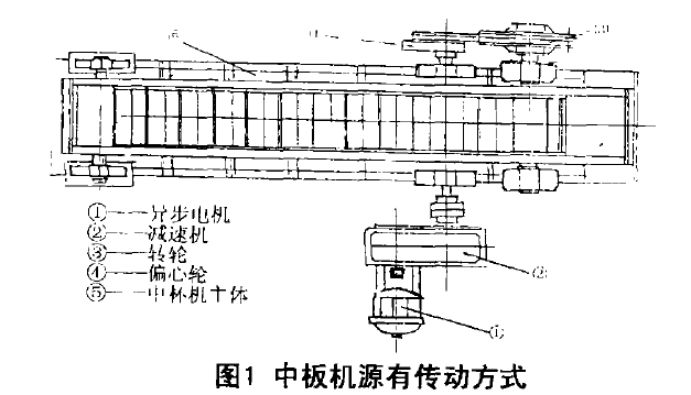 2.1原有中型板式喂料机传动方式为:普通异步电机一减速机——偏心轮——棘爪一棘轮——中板机主动轴——中板机。