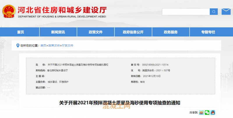 为强化预拌混凝土质量及海砂使用管理,落实参建主体、预拌混凝土生产企业质量责任,保障建筑工程质量安全,近日,河北省住房和城乡印发通知,决定在全省开展预拌混凝土质量专项抽查。本次抽查的主要内容有:受检工程的建设、施工、监理、预拌混凝土生产等单位及其从业人员执行混凝土质量相关法律法规和工程建设强制性标准情况;工程实体混凝土质量情况等。