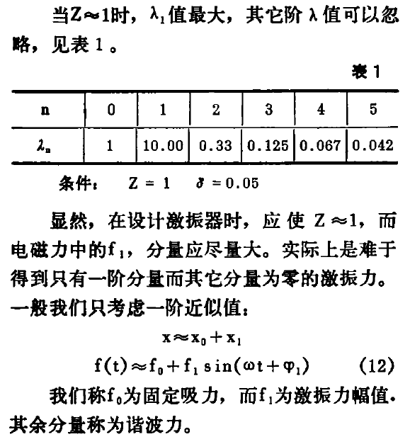 电磁式振动机械的激振力即是电磁铁铁芯与衔铁之间的吸力,而铁芯与衔铁之间存在一定气隙,