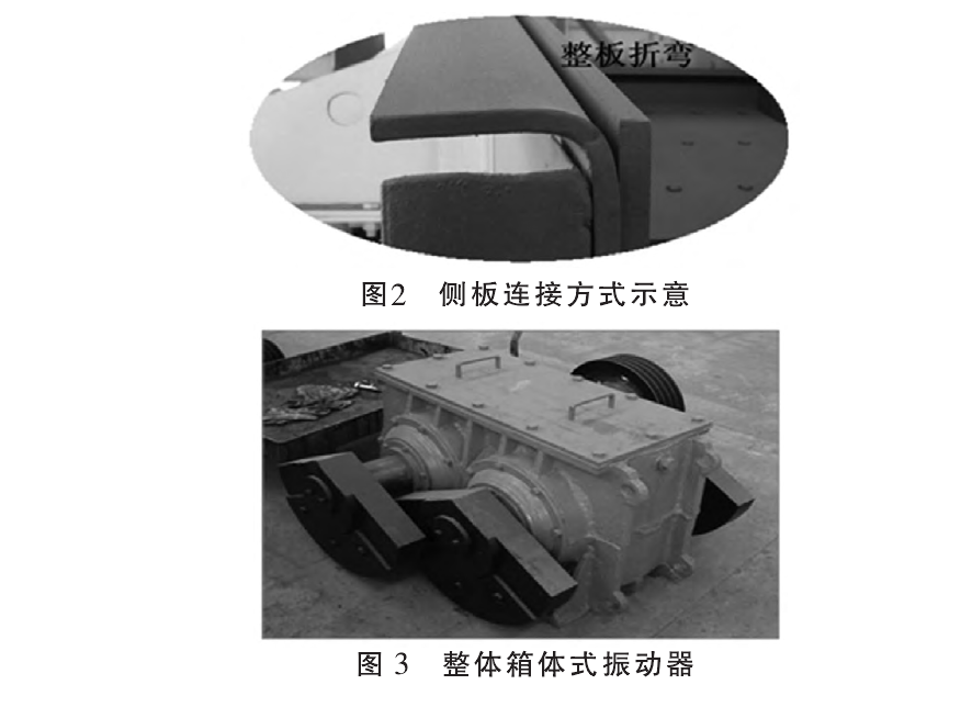 GZT棒条给料机性能特点如下:1)针对特重型工况设计制造,具有非常高的可靠性,作业率高;2)振动强度大、处理量大,可满载启动,配以变频器可进行给料量的控制;3)侧板采用2g材料整板折弯,刚性,侧板上无焊接,耐疲劳,加强筋和侧板之间全部采用高强度螺栓联接。侧板连接方式示意详见图2。4)振动器采用整体箱体式振动器,齿轮强迫激振,稀油润滑,运行稳定性高,详见图3。