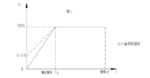 如图二板式给料机作为一种半连续给料的机械,其工作性质为低转速、大扭矩,带料启动等特点,其调速形式是典型的恒扭矩调速。这就要求变频装置保证v1随f1成比例的变化。则V1/f1=常数,这样可保证在频率变化过程中电动机具有同样的过载能力,当电压达到99%时输出扭矩为大,且为常数。