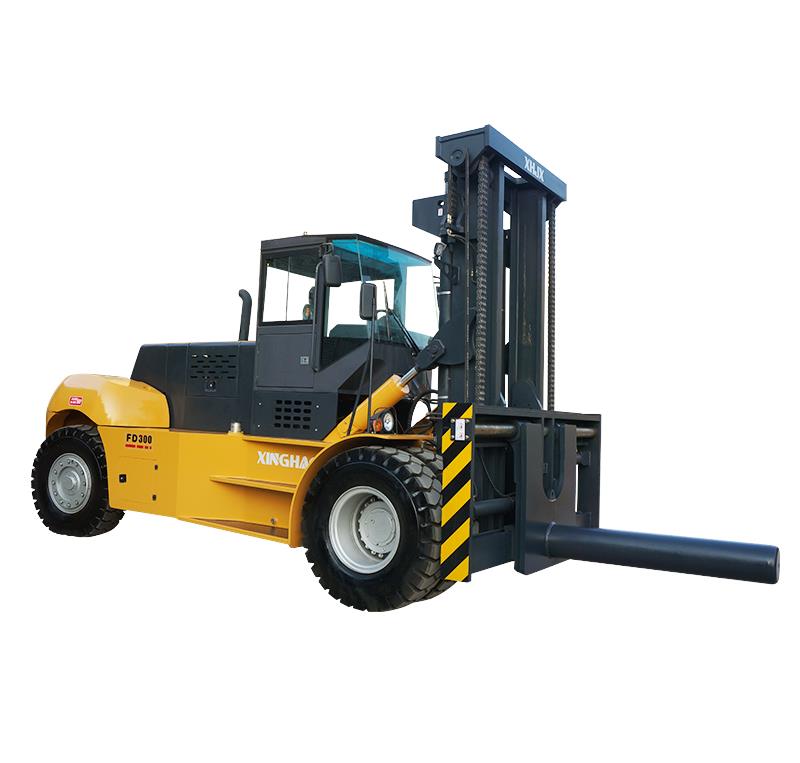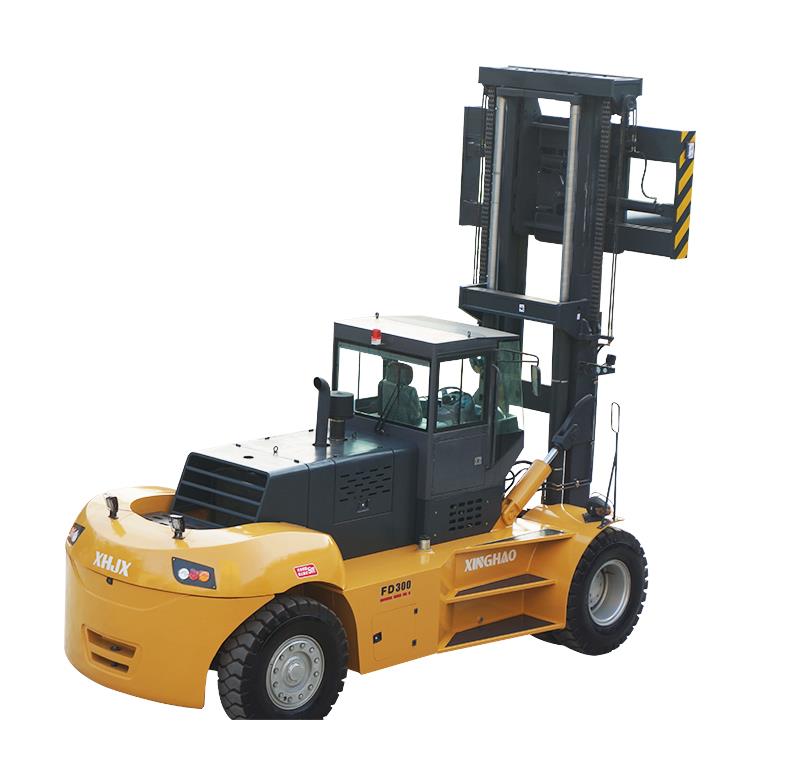 当叉车装上卡车时,驾驶员应注意叉车的总重量,并确保以下事项:上下卡车的登车桥装置能正常使用;卡车轮胎被锁住;有足够的空间容纳叉车的门架,如果不能容纳,需要把门架和车体分离后再装载运输。