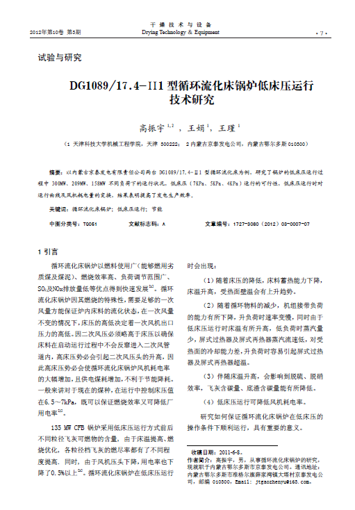 关键词:循环流化床锅炉;低床压运行;节能