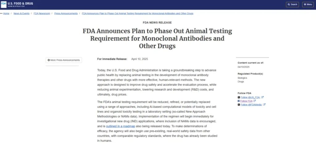 点成洞察 | FDA政策变革:动物实验时代即将终结?