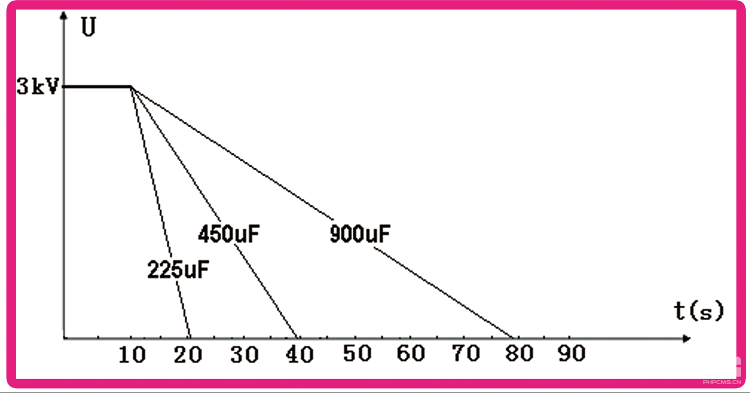 测试仪放电时间的长短与电容容量、电容电压有关。电容容量越大、电压越高,放电时间就越长,反之放电时间就越短。