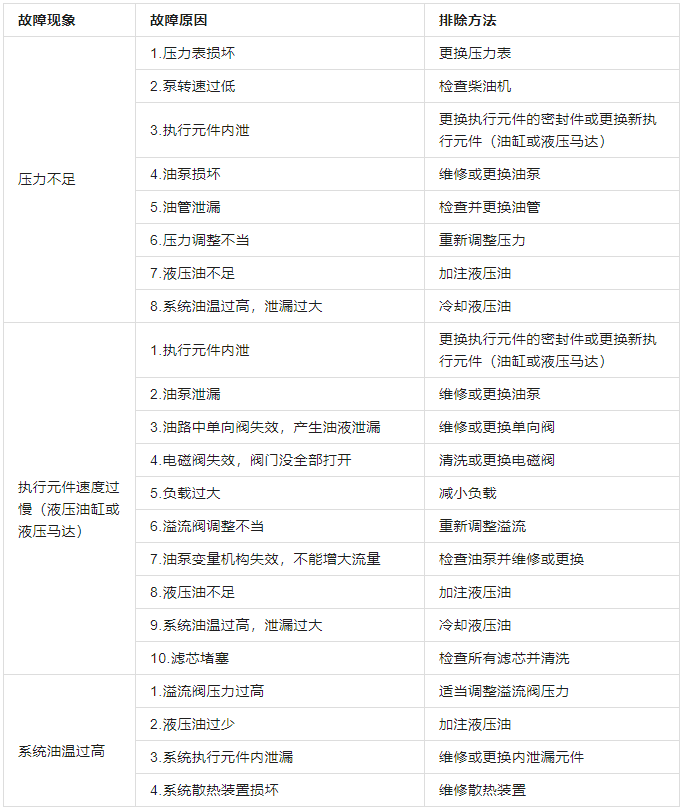 表1 液压系统部分常见故障处理表