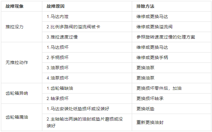 表4 动力头推拉部分常见故障处理表