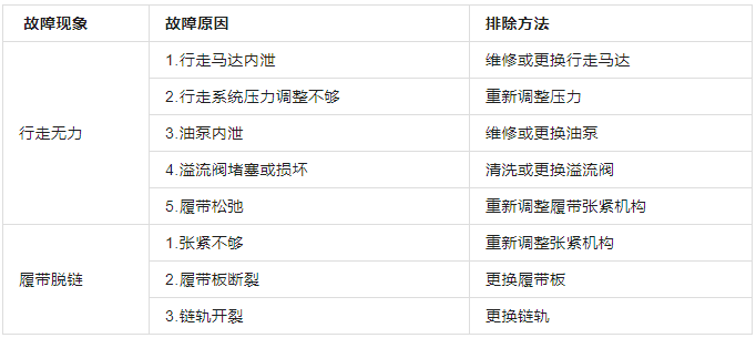 表7 行走部分(履带)常见故障处理表
