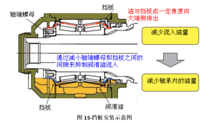 根据设计方案①的试验结果,推出设计方案②,为了减少轴承内部搅动的润滑油量,采取了以下措施。