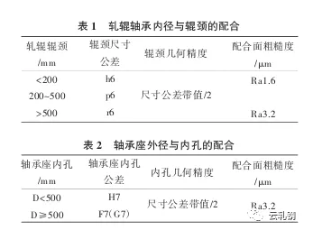 2.1 轧机轴承尺寸配合