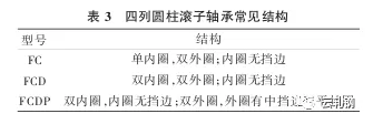 通过四列圆柱滚子轴承极限转速、径向承载负荷性能相当可观,但面对轴向力却无法承受。此类型轴承主要包含FC、FCD和FCDP三种型号的结构形式。应用于生产实践中时,应以轧机结构形式为根据,在考虑轧制料型受力等多方面因素的基础上,对轧制力分布更科学、合理的轴承结构形式展开分析[3]。同时,应对拆卸是否方便、更换使用中检查确认是否便利等予以关注。表3为四列圆柱滚子轴承常见结构。