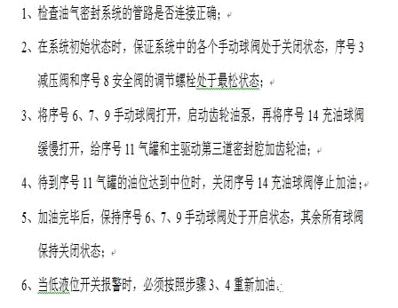 在盾构机土仓压力小于或等于3.0bar时,油气密封系统不工作,但需要向主驱动第三道密封腔加注齿轮油,操作步骤如下: