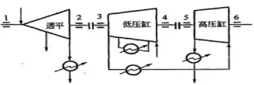 某厂一台透平压缩机组整体布置如下图所示。机组年度检修时,除正常检查、调整工作外,还更换了连接压缩机高压缸和低压缸之间的联轴器的连接螺栓,对轴系的转子对中情况进行了调整。