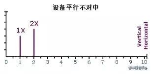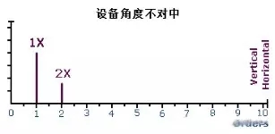 不对中的两个轴相交于一点但互相不平衡,这样的不对中称为轴线角度不对中。轴线角度不对中会在轴上产生一个弯曲作用,在频谱上显示为高强度的1X振动和在两端的轴承上的少量轴向2X振动。还会有相当强的径向(水平和垂直方向上)1X和2X振动,但是这些振动频谱都是相同的;