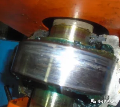 其整个过程为:打开两个轴承上盖检查,内部牛油加注量适中,排除了因为过多的牛油聚积散热效果差而引起的高温(见图5)。