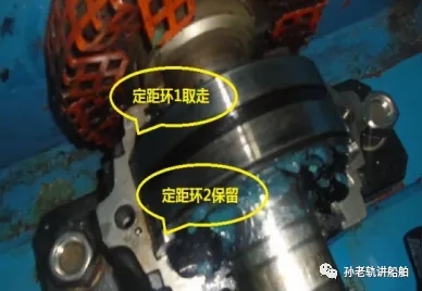 步,两个轴承座内的定距环分别只需装1个即可(取走自由端,只保留马达端),这样的好处是让运行中的轴系发热后能在轴向有伸缩空间,防止轴承在轴向移动受阻而发热(见图8、9)。