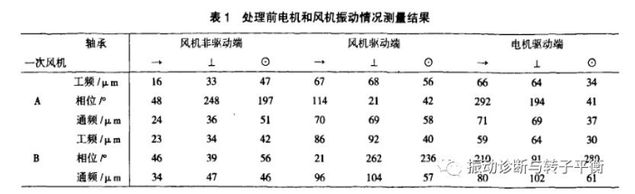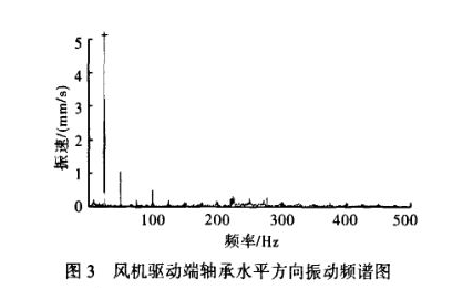 通过以上分析排除了风机叶轮质量不平衡、风机转子不平衡、轴承损坏、安装润滑不良及风机通流部分损坏等故障。