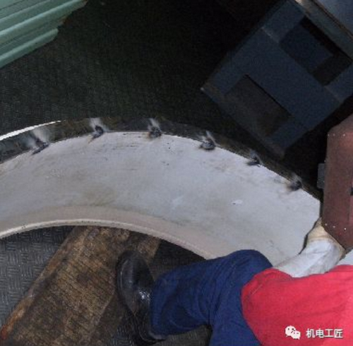 2、侧面采用花纹钢板焊接制作翅片改变润滑油高速旋转的方向,确保润滑油能通过甩油孔流回水导油槽内。