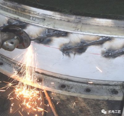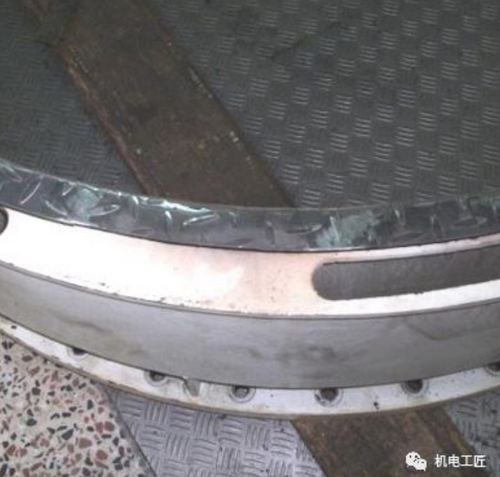 1、挡油圈上部平面圆周采用钢板焊接挡板阻止润滑油往上窜。