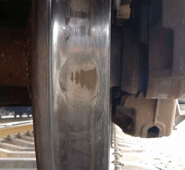 ▲车轮故障:车轮踏面擦伤过限、车轮轮缘过限、车轮踏面凹下过限、车轮踏面剥离过限、车轮踏面缺损过限、车轮踏面圆周磨耗过限、车轮轮辋辐板裂损等。