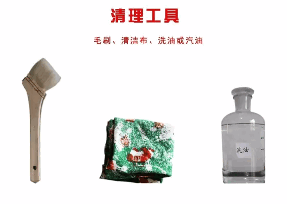 清理工具:毛刷、清洁布、洗油或汽油