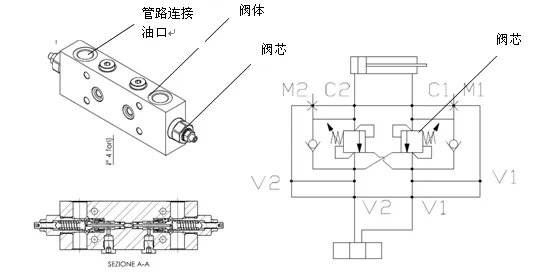 1.倾缸平衡阀外形及结构图: