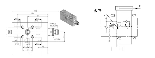 2.加压油缸平衡阀外形及结构图: