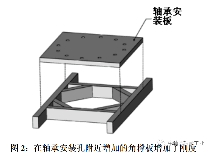 在许多情况下,设计者可以遵循轴承制造商推荐的钢板安装厚度。此类建议基于滚动元件或套圈截面的尺寸。只要加固均匀且通过试验验证,用角撑板或槽钢加固薄钢板是一种替代方法(图2)。应避免在轴承下使用薄的“座板”。它们往往只在局部区域提供刚性支撑,使固定螺栓和滚动体承受更大的压力。