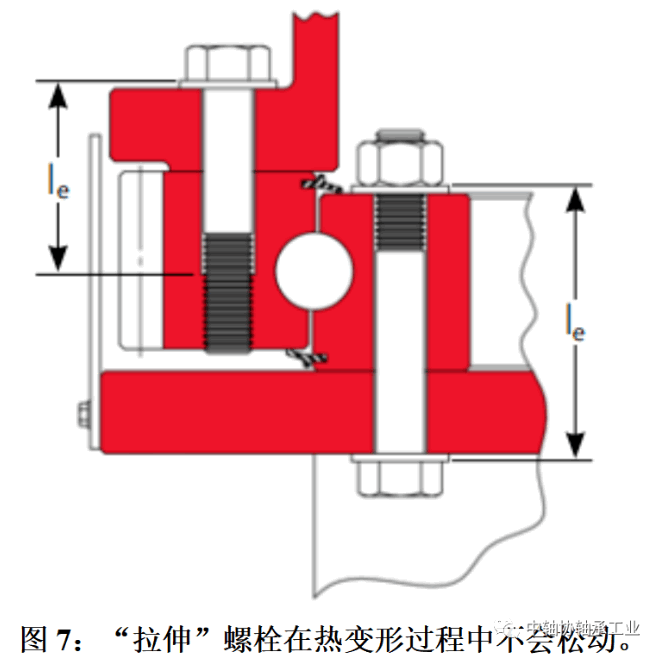 通过增加紧固件的“拉伸”部分,使螺栓接头更不易松动;即从螺栓或螺丝头下方到个啮合螺纹的螺栓长度,如图7的内圈所示。通过朝孔底部攻丝安装孔,可以获得额外的拉伸长度。
