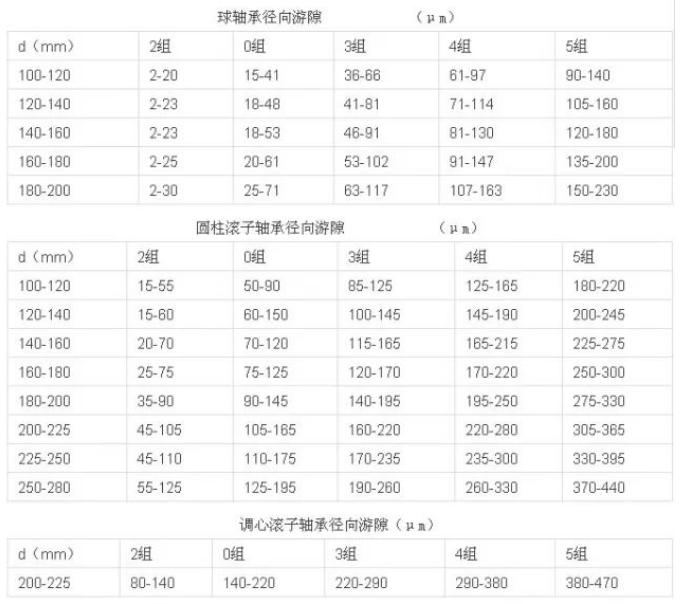 2.4老轴承磨损及新轴承游隙在以下规范内: