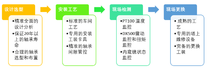 现实应用中,绝大多数的轴承损伤是由一个主要原因引起的。但是受到检查条件苛刻、检查手段匮乏、检查人员经验不足等客观原因的限制,我们总是在轴承已经严重损坏时才发现。这也就造成了维修成本的增加。威能极作为的风电齿轮箱生产厂家,在轴承计算、选型、使用和维护上一直秉承着标准。在轴承的设计选型、安装工艺、现场检测和更换维修方面都有着独到的见解和应对方案。可以帮助最终用户实现现场维修更换轴承、改善轴承使用寿命等迫在眉睫的需求。