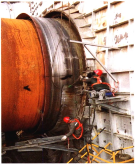 (2)安装时,要考虑窑体变形带来的误差,要确保冷风套法兰与回转窑筒体间隙最小10mm,20mm;