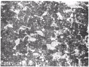 用JSM-35C型SEM对失效轴承滚道观察表明,磨损部位布满了腐蚀坑,如图la、b所示,剥落较平直一边的形貌见图1c,为较深的蚀坑,而具有不平直边界一侧的形貌为较浅的蚀坑(如图1d)。并有层状剥落特征。