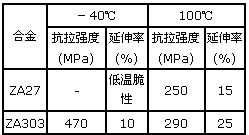 (4)具有高强度、高韧性及良好的低温性能,克服了ZA27合金的低温脆性。