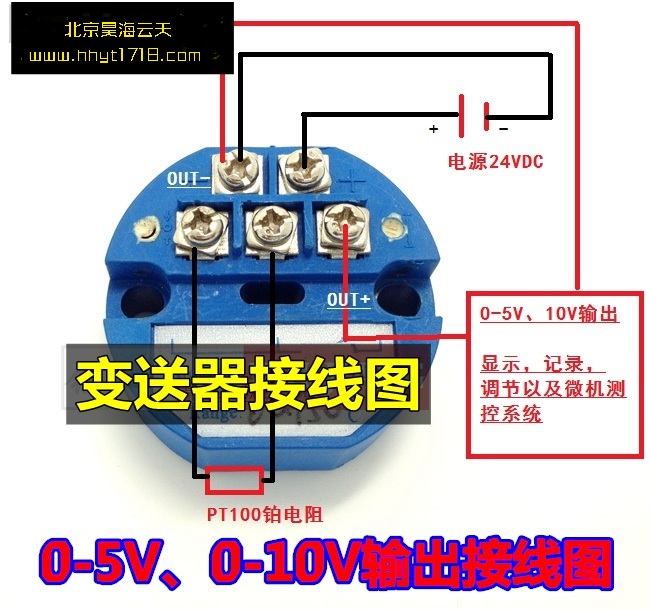 四、PT100温度变送器模块接线图