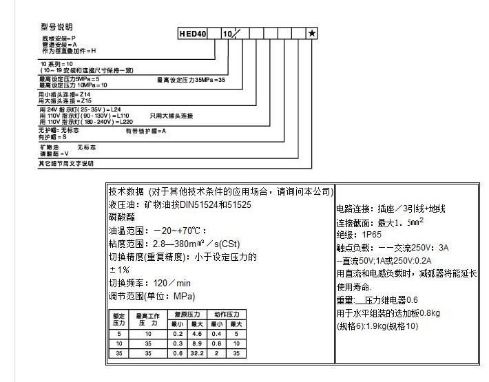 HED40压力继电器